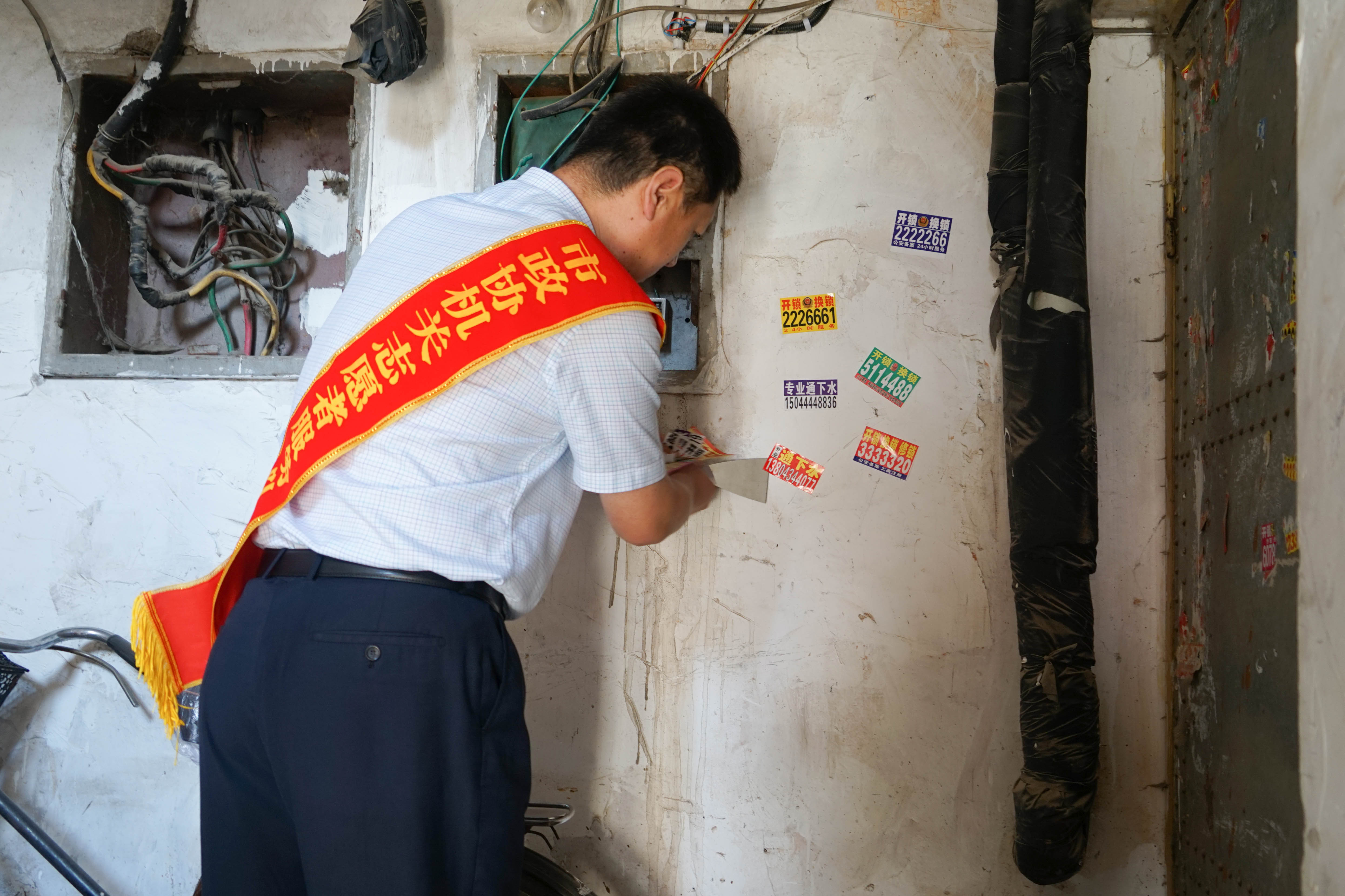 6月29日,正值我市第五个“文明卫生日”来临之际,为深入开展文明创建活动,推进“健康四平”建设,增强市民主人翁意识,形成浓厚爱国卫生工作氛围,市政协机关组织党员志愿者服务队,走进所包保的铁西区英雄社区开展环境整治义务劳动。志愿者服务队深入社区街道、广场、花园以及各居民楼等角落,清理杂草、收拾垃圾和清理楼道内小广告等。通过志愿者服务队与社区工作人员的共同努力,该小区整体卫生状况有了明显改观。